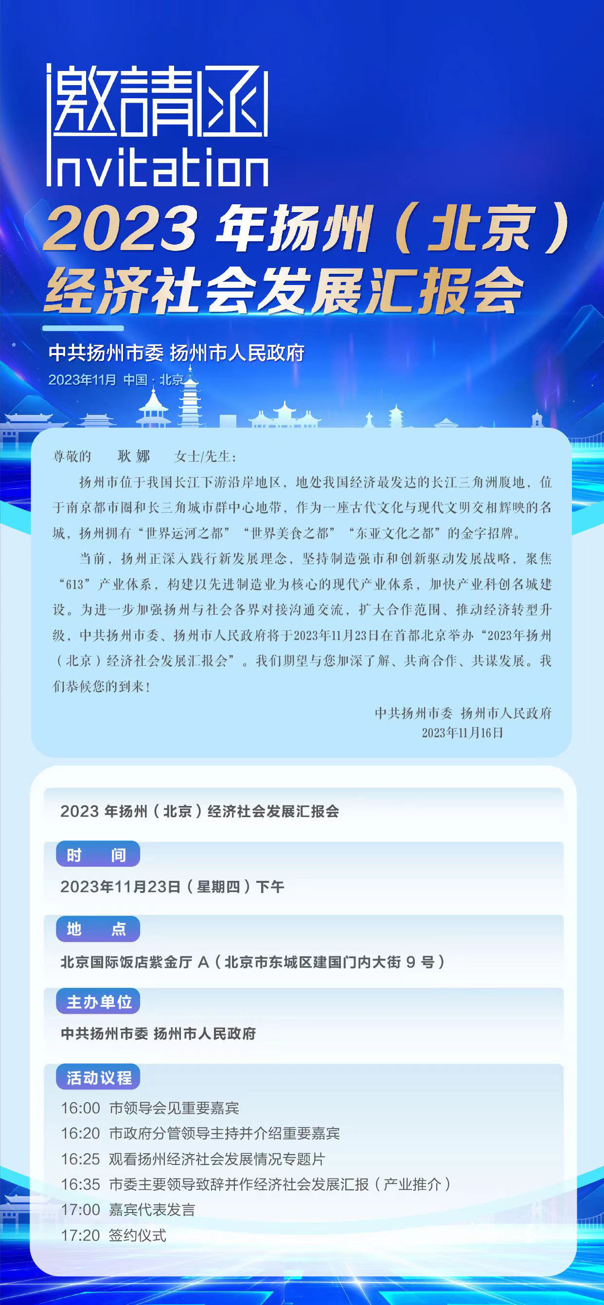 荣幸受邀出席2023年扬州北京经济社会发展汇报会发表时间:2023-12-14 17:04